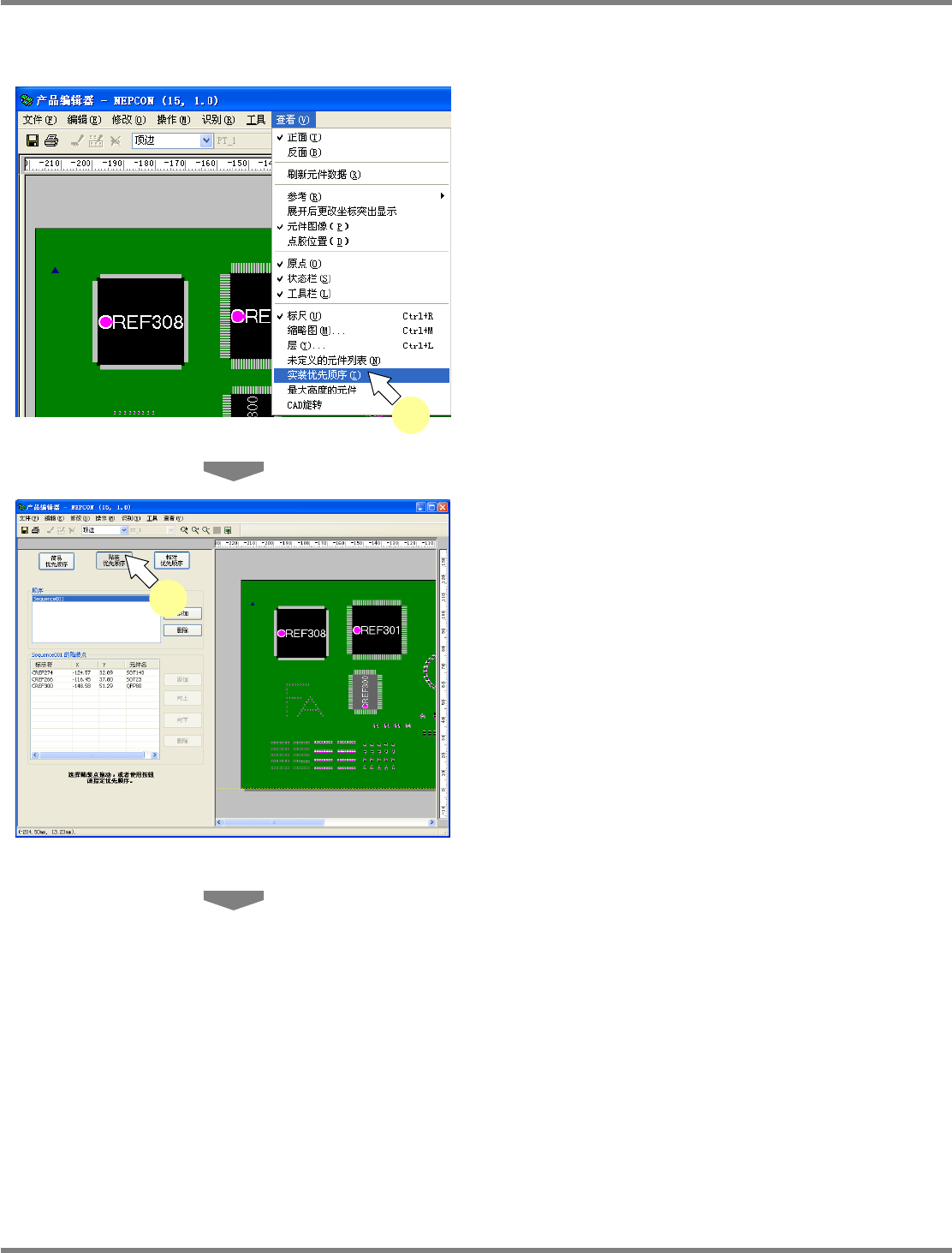 面元件后再贴装上面元件的生产数据。如果属于屏蔽盒,将会编制在贴装屏蔽盒之前先检查屏蔽盒