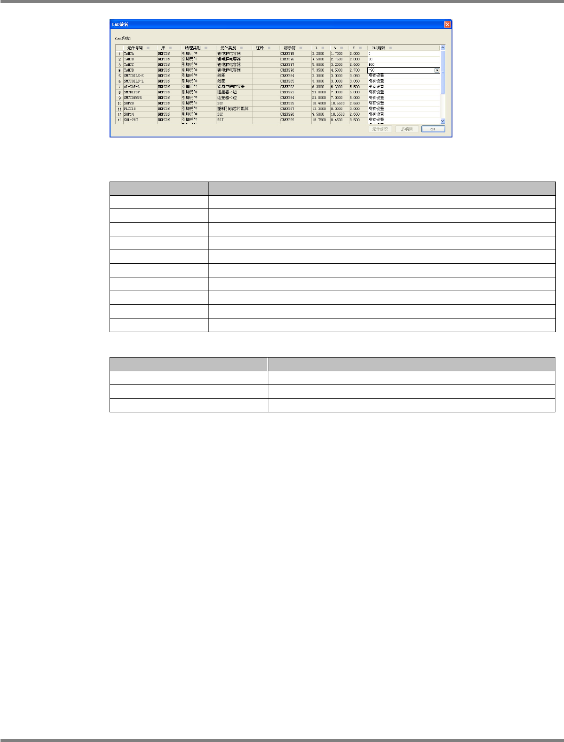 NPM-DGS 程序手册 5.8 PCB 编辑 EJS9AC-MB-05P-03 Page 5-297 设定项目 项目 说明 ‘ 元件号码 ’ 显示元件名称。 ‘ 库 ’ 显示程序库名称。 ‘ 物理类别 ’ 显示形状定义。 ( 箱型、引脚元件、球形元件、异形元 件 ) ‘ 元件类别 ’ 显示元件种类。 ‘ 注释 ’ 显示元件的注释。 ‘ 标示符 ’ 显示所使用元件的实装点的标示序号 。 ‘L’ 显示元件的外形 L 。 ‘W’ 显示元…