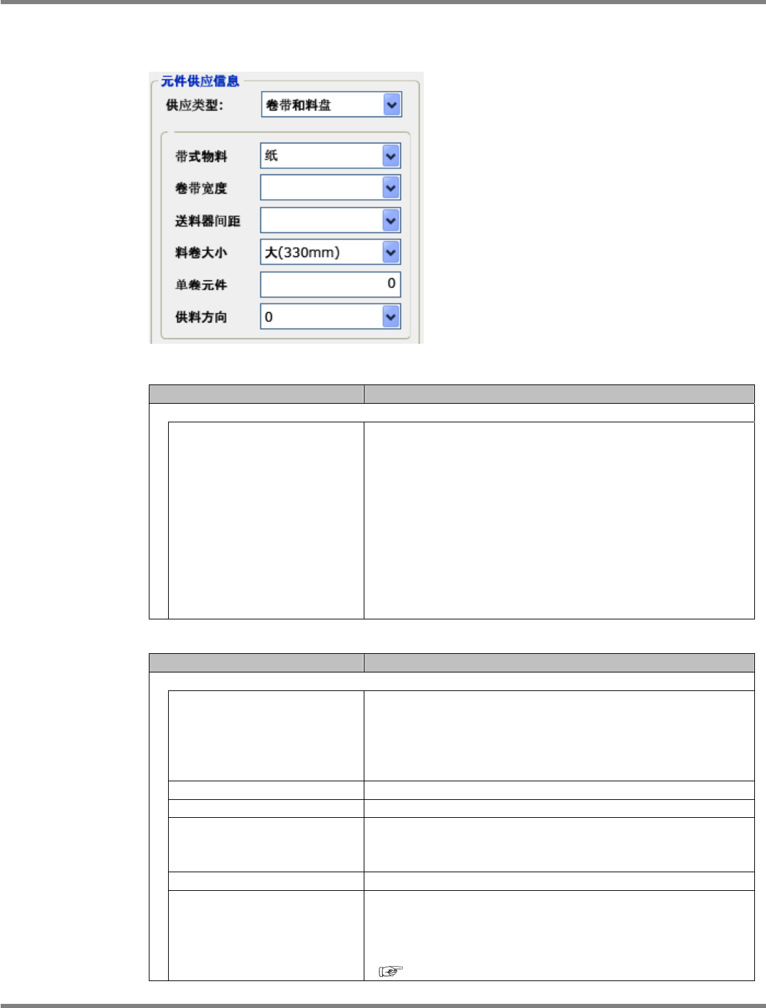 元件供应信息的设定项目如下所示。