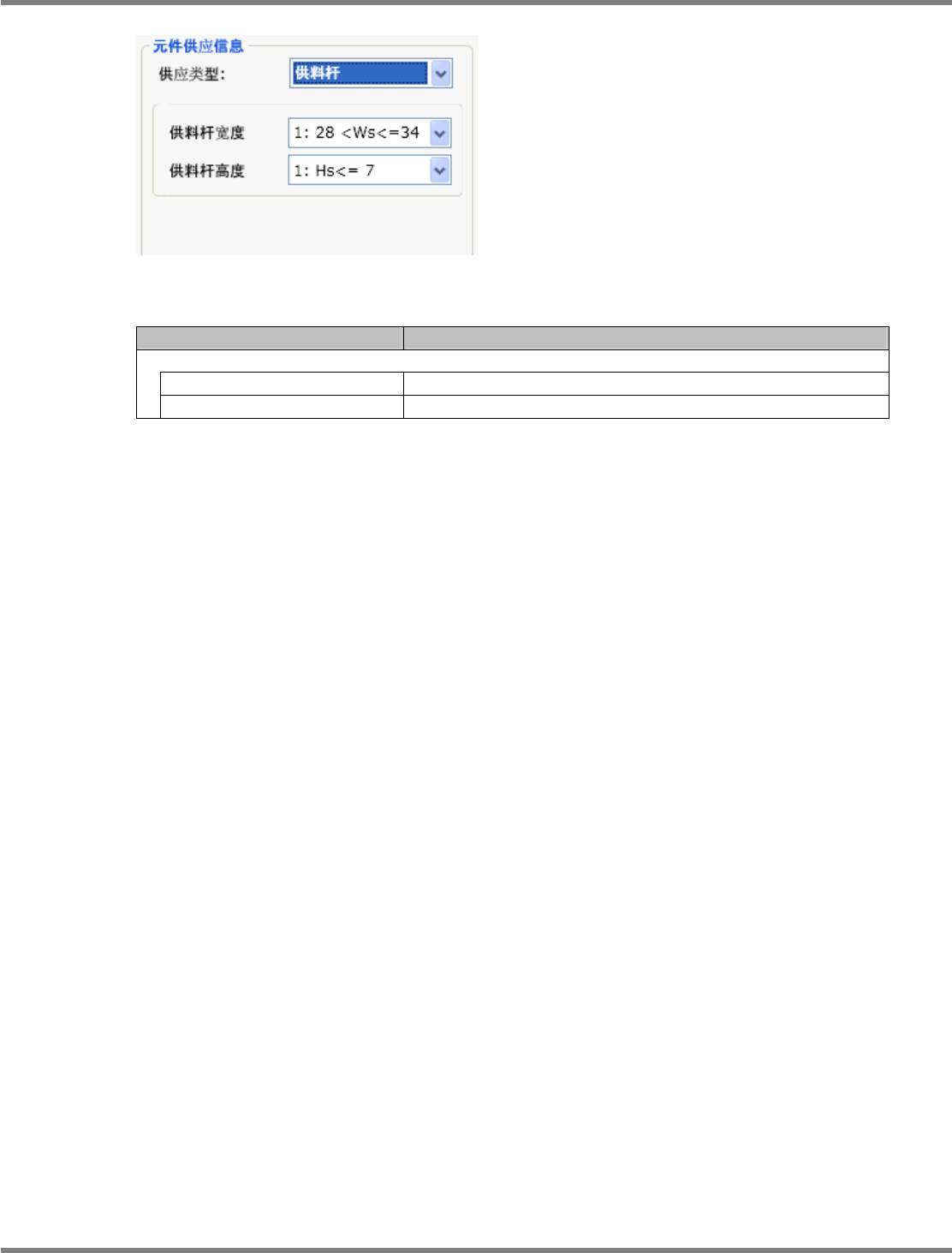 NPM-DGS 程序手册 6.5 添加新的元件 Page 6-50 EJS9AC-MB-06P-02 设定项目 ( 杆式 ) 项目 说明 ‘ 元件供应信息 ’ ‘ 供料杆宽度 ’ 设定所设置供料杆的宽度。 ‘ 供料杆高度 ’ 设定杆子的高度。 Parts060603S-0 8C01