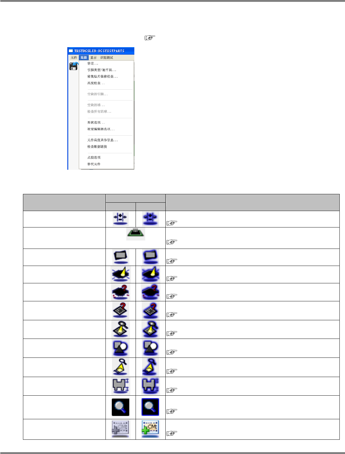 NPM-DGS 程序手册 6.5 添加新的元件 Page 6-76 EJS9AC-MB-06P-02 工具栏 菜单项目 初期显示 编辑后 说明 [ 点胶选项 ] 设定点胶选项数据。 ‘6.5.5 点胶选项数据 ’ [ 设定代替元件 ] 设定代替元件。 ‘6.8 代替元件的设定 ’