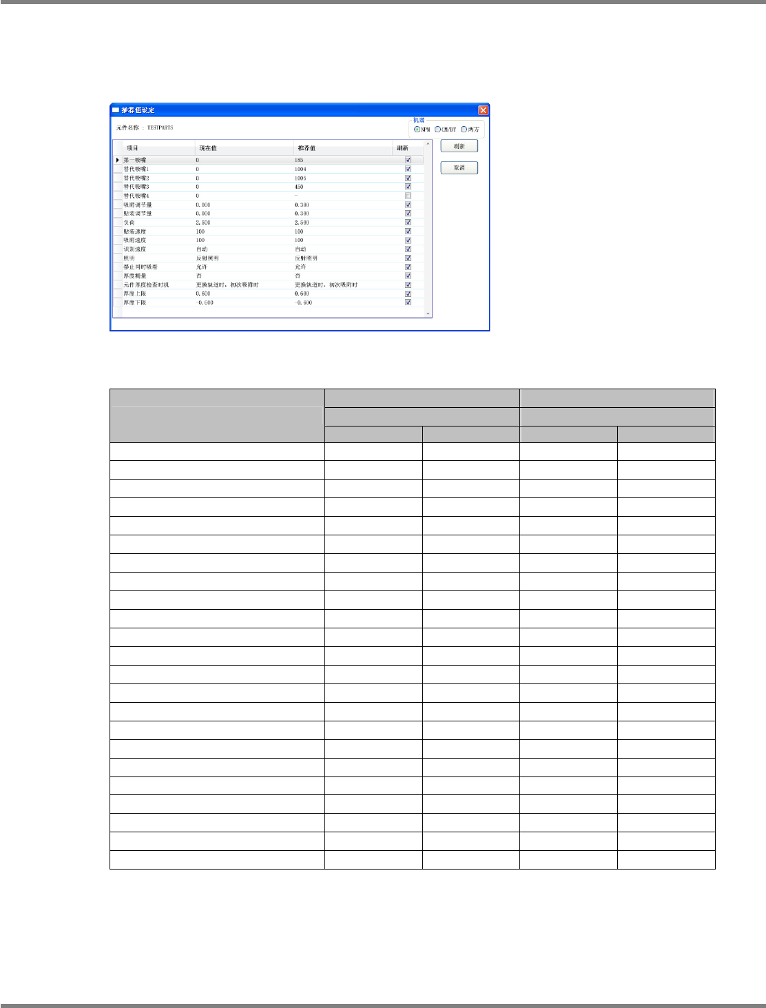 推荐值的设定,因机种与元件种类的不同,已分别自动设定。