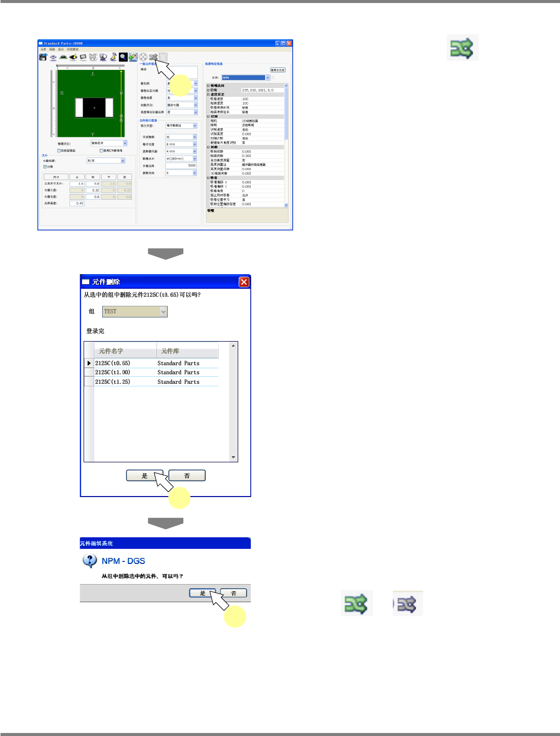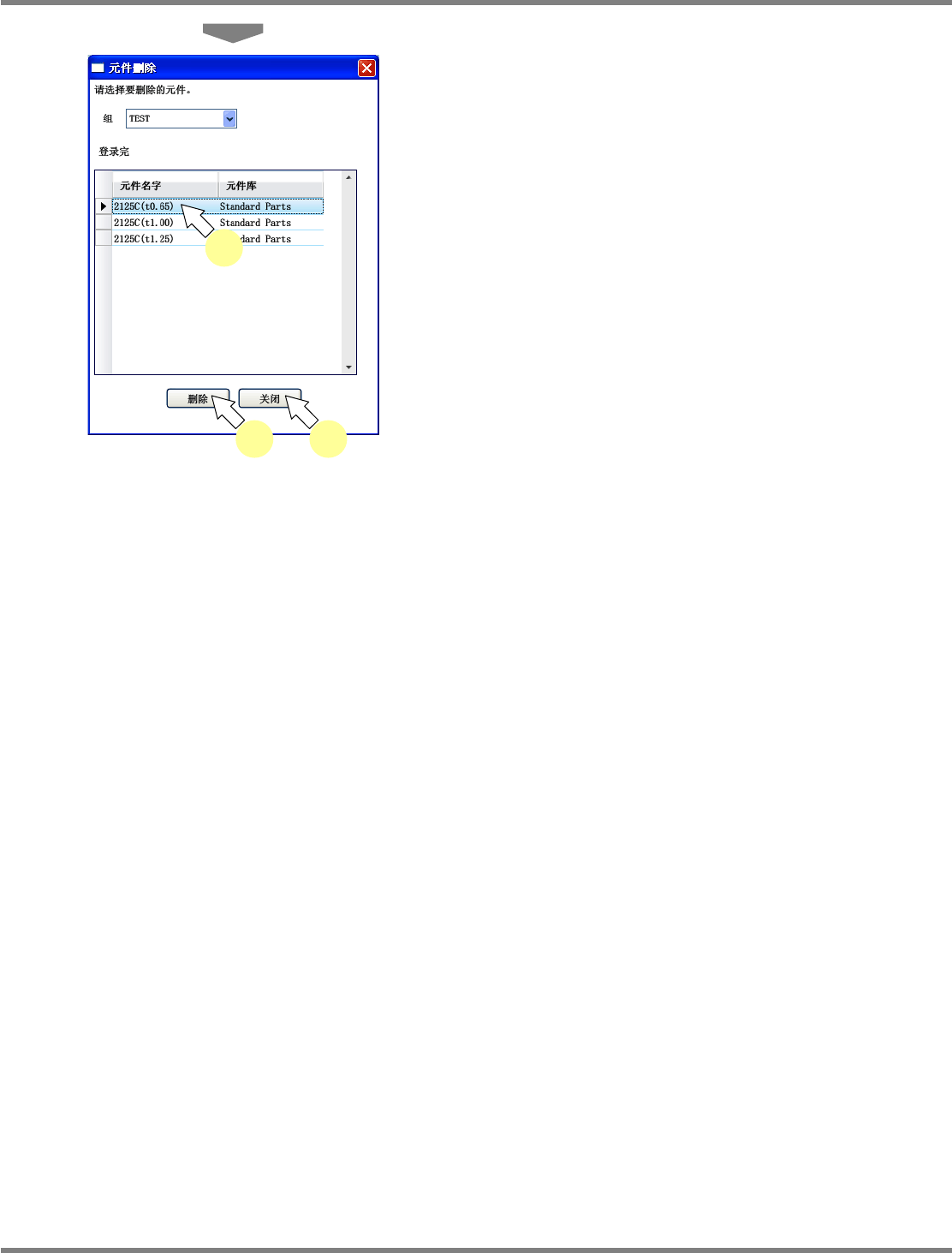 NPM-DGS 程序手册 6.8 代替元件的设定 Page 6-134 EJS9AC-MB-06P-02 3 选择要删除的元件。 4 点击 [ 删除 ] 。 5 点击 [ 关闭 ] 。 将会关闭 < 元件删除 > 画面。 Parts060802S-03 C 00 3 4 5