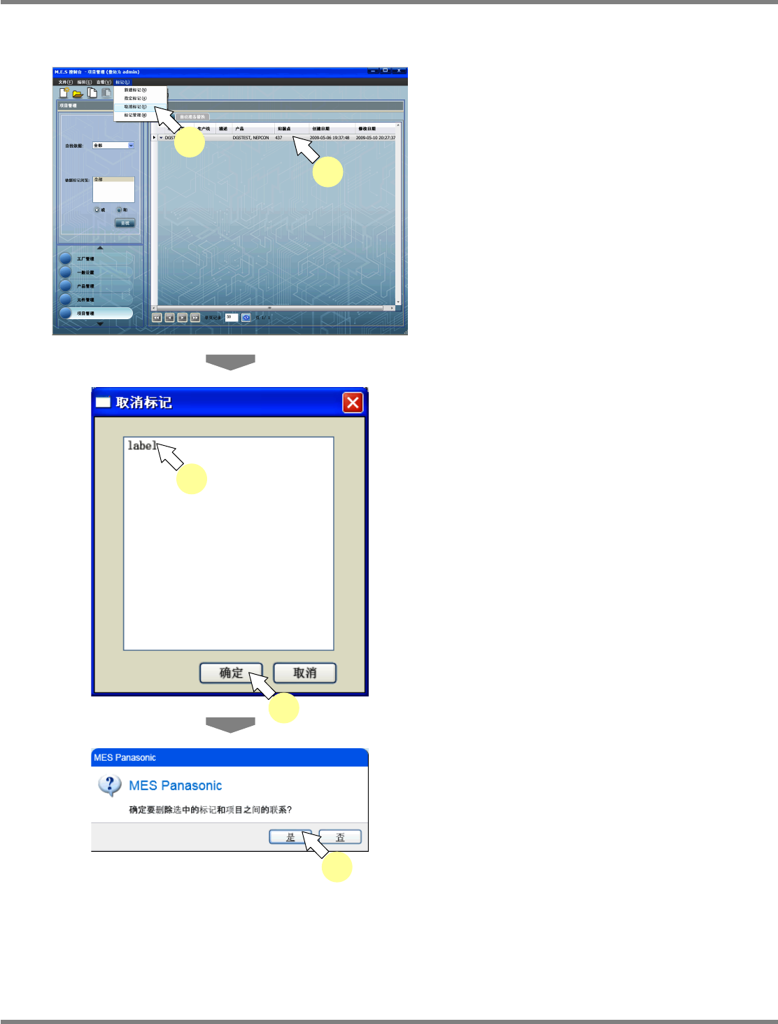 NPM-DGS 程序手册 7.1 概要 Page 7-16 EJS9AC-MB-07P-03 给数据编制工作贴标签 1 在数据编制工作一览表中选择元件。 2 选择菜单栏的 [ 标记 ] [ 指定标记 ] ,或 者点击工具栏的 ( 指定标记 ) ,或 者在选择的数据编制工作的右击菜单 中选择 [ 指定标记 ] 。 显示出 < 应用存在的标记 > 的画面。 3 选择标签。 4 点击 [ 确定 ] 。 在选择的数据…