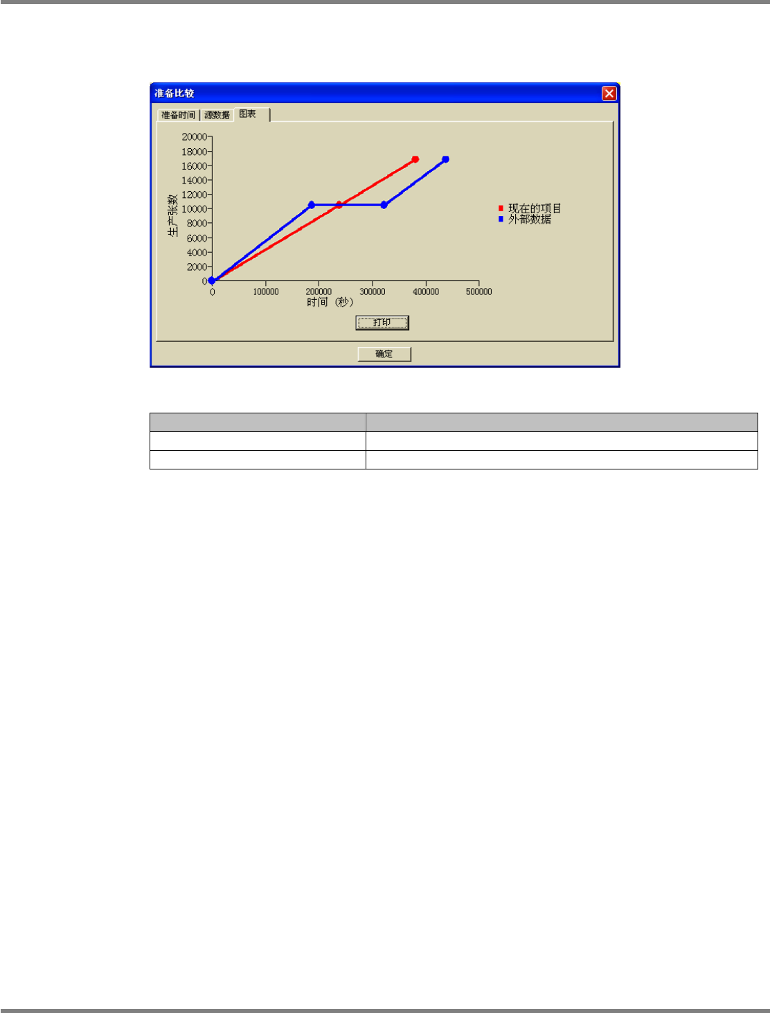 NPM-DGS 程序手册 7.2 项目编辑系统主画面 EJS9AC-MB-07P-03 Page 7-31 7.2.4 准备转换的比较 ( 图表 ) 显示以 X 轴为生产时间、以 Y 轴为生产张数的曲线图表,并将其 打印。 按钮 按钮 说明 [ 打印 ] 打印曲线图表。 [ 确定 ] 结束 < 准备比较 > 画面。 Product070204S- 01C01