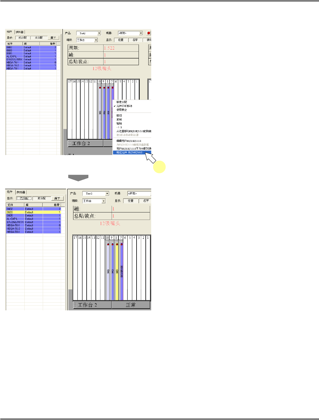 使用这项功能,能够将配置在供料器上的全部未使用元件都从供料器上取下来,并从项目管理的一