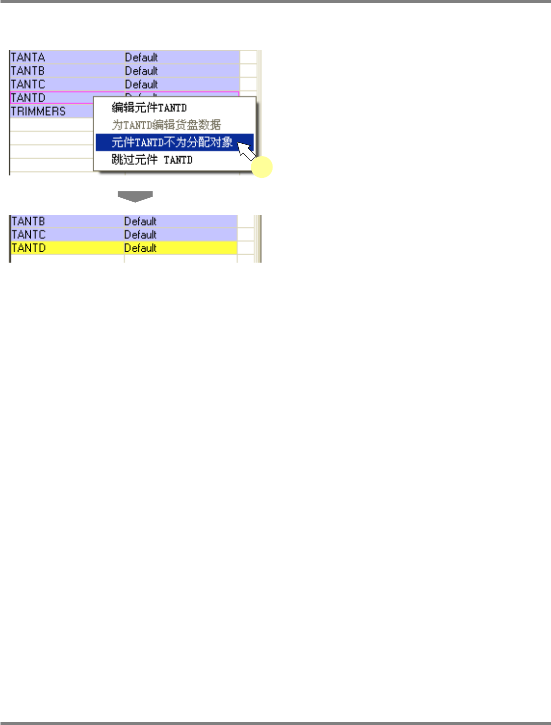 从供料器配置画面的元件一览中右点