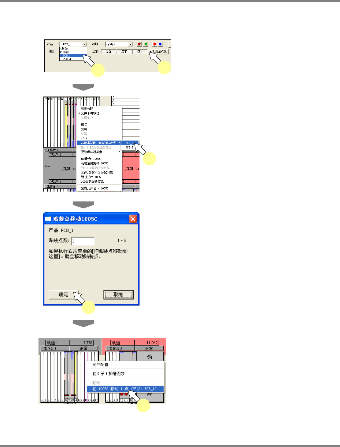设定移动的贴装点数后,点击
