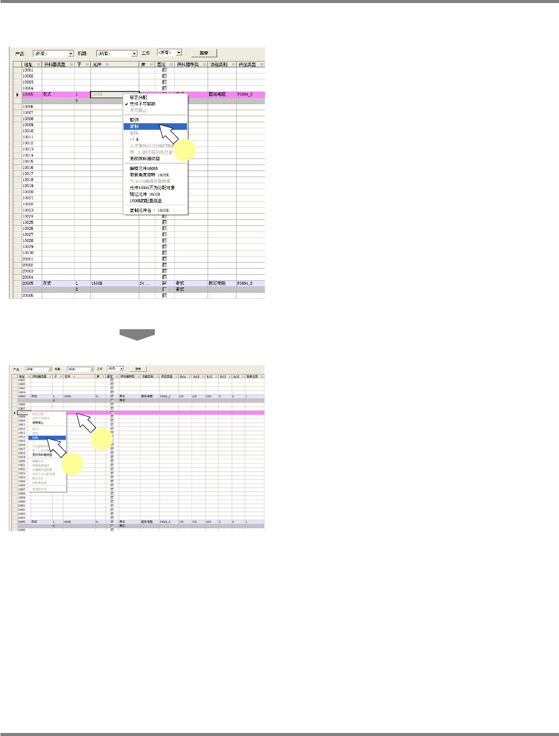 供料器表中进行元件的复制/粘贴