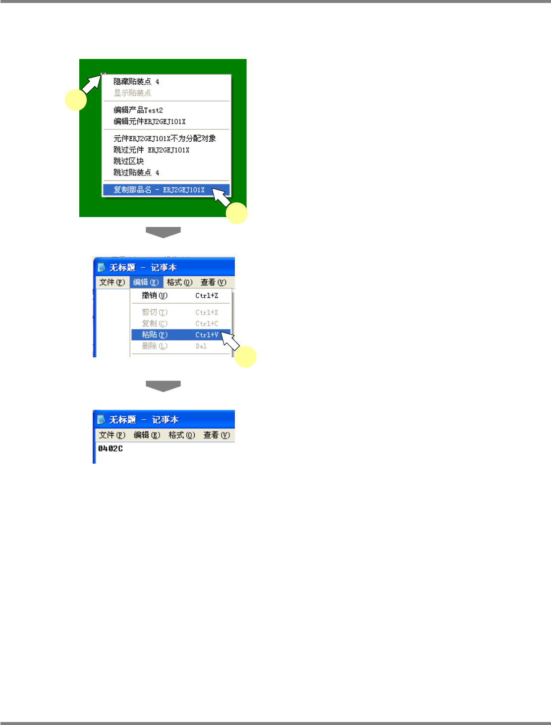 将元件名称复制到剪贴板上。之后,能够粘贴到记事本等软件上。