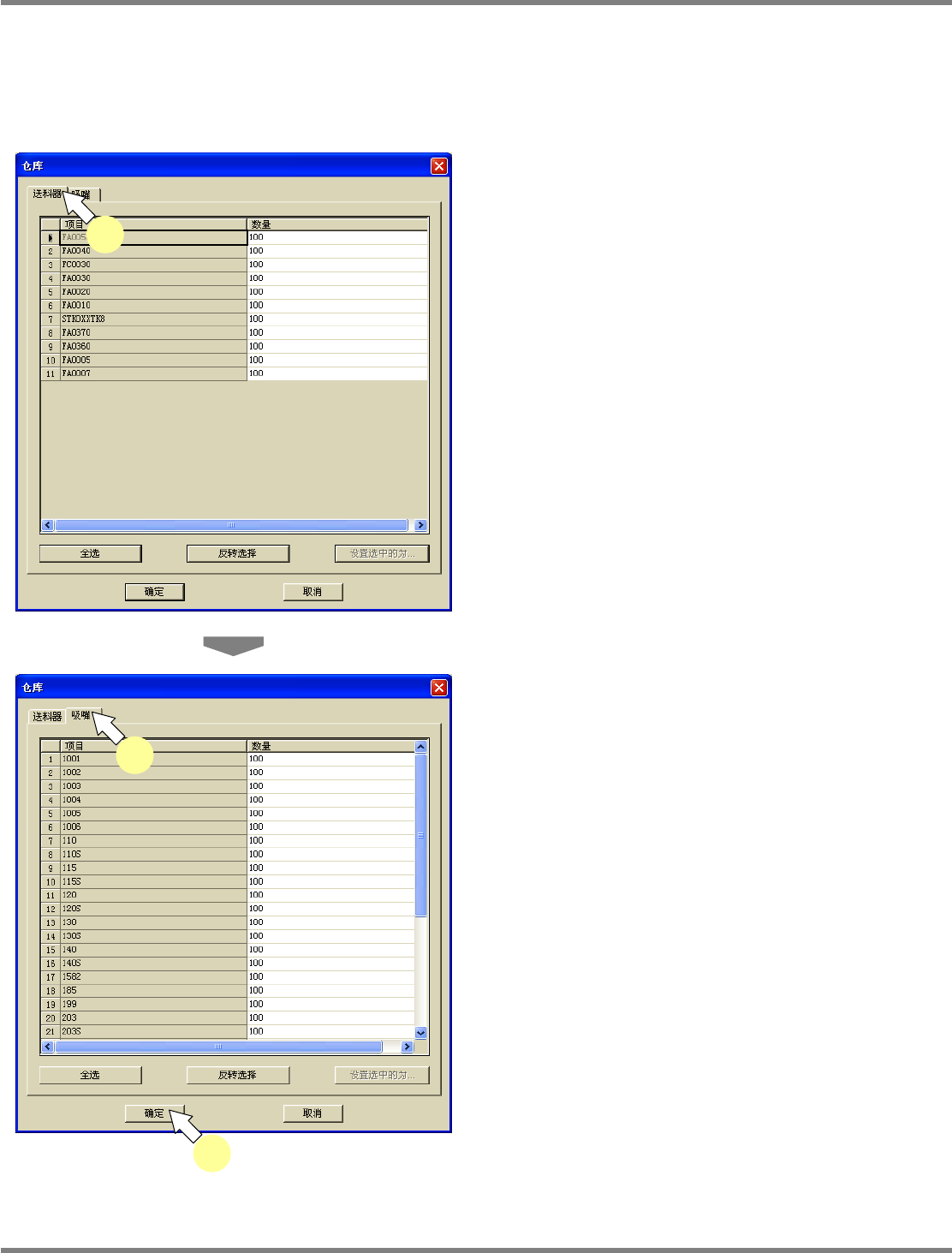 标签,设定各供料器的资