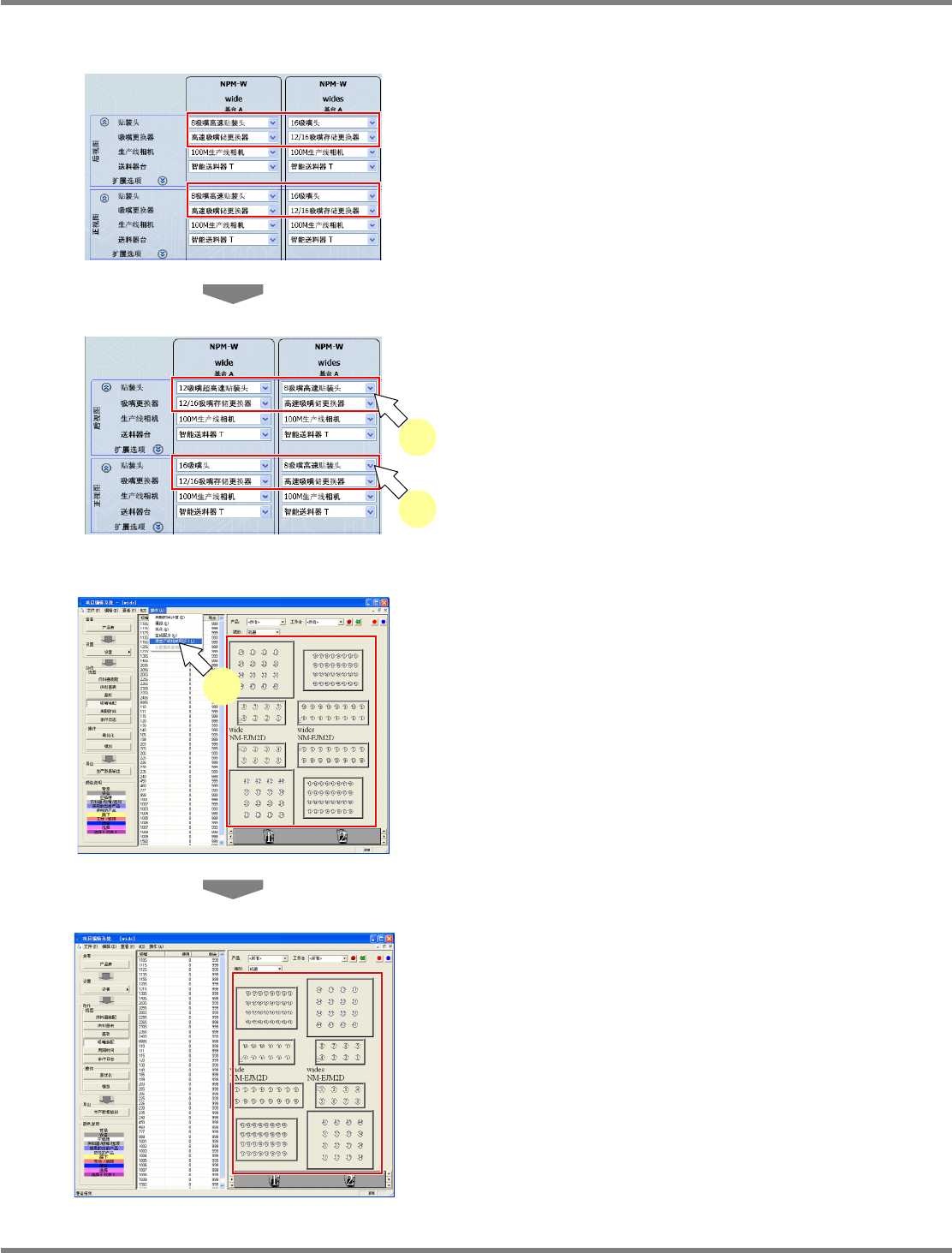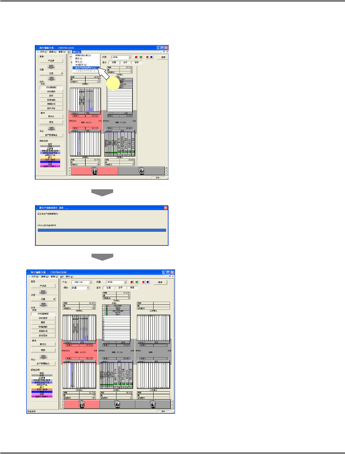 NPM-DGS 程序手册 7.12 生成数据 EJS9AC-MB-07P-03 Page 7-159 7.12.5 使生产线构成同步 在通过数据创建编辑器进行编辑时, 当工厂管理的生产线构成或设备 选项发生了变更之际,执行 [ 使生产线 构成同步 ] ,可使创建编辑器侧的生产线设定刷新 至工厂管理的设定。 1 选择菜单栏的 [ 操作 ] [ 使生产线构成 同步 ] 。 将显示 < 使生产线构成同步 进度 > 画面。 …
