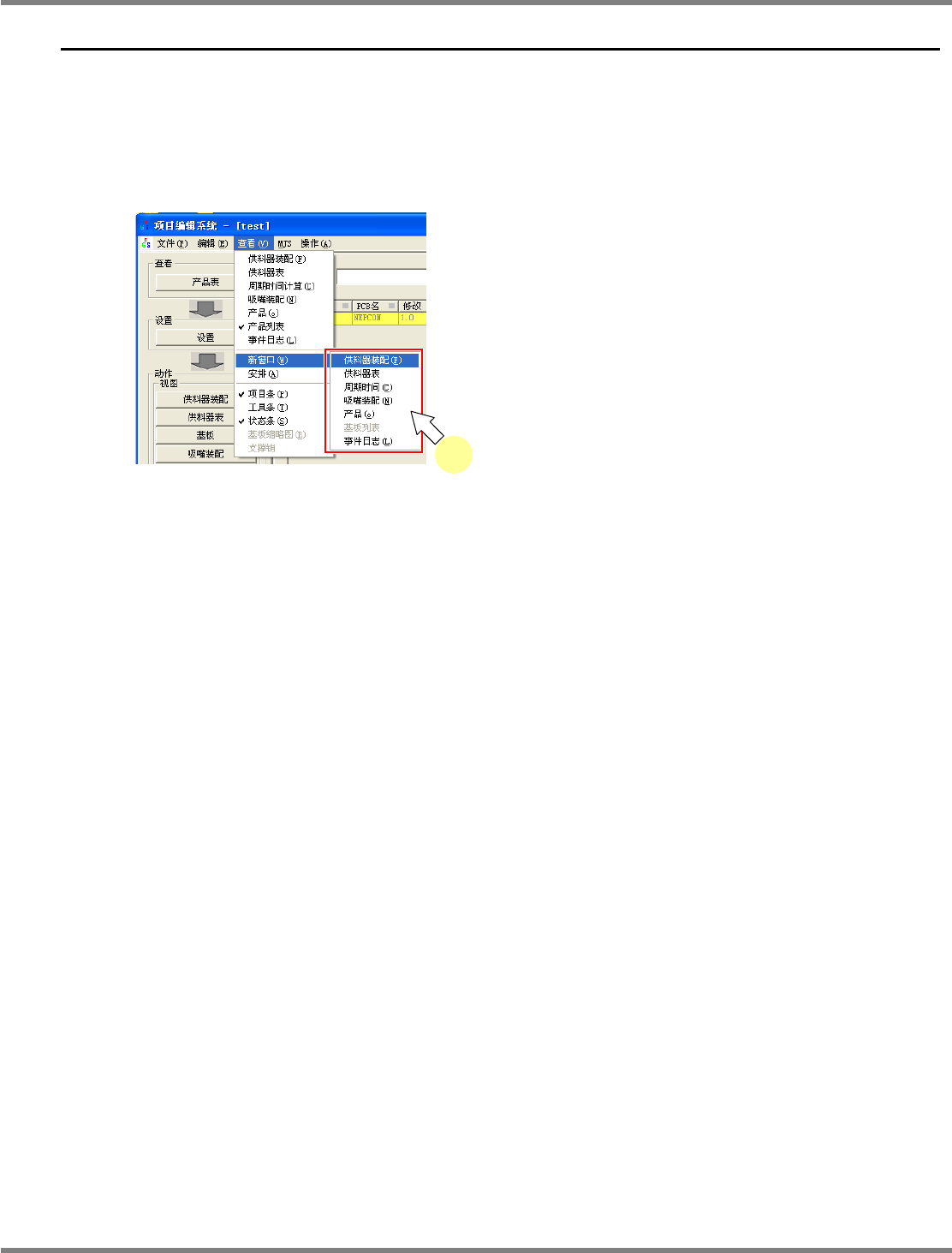 NPM-DGS 程序手册 7.13 数据编制工作的方便的使用方法 EJS9AC-MB-07P-03 Page 7-161 7.13 数据编制工作的方便的使用方法 可在数据编制工作中根据必要打开复 数视图画面,并列显示。使用在 如下所示情况的话,很方便。 同时确认供料器装配画面和吸嘴装配 画面。 打开 2 个供料器装配画面,在分散设 置的机器之间进行元件的移动和 拷贝。 从新添加打开视图画面 1 选择菜单栏的 [ 查看 ] …