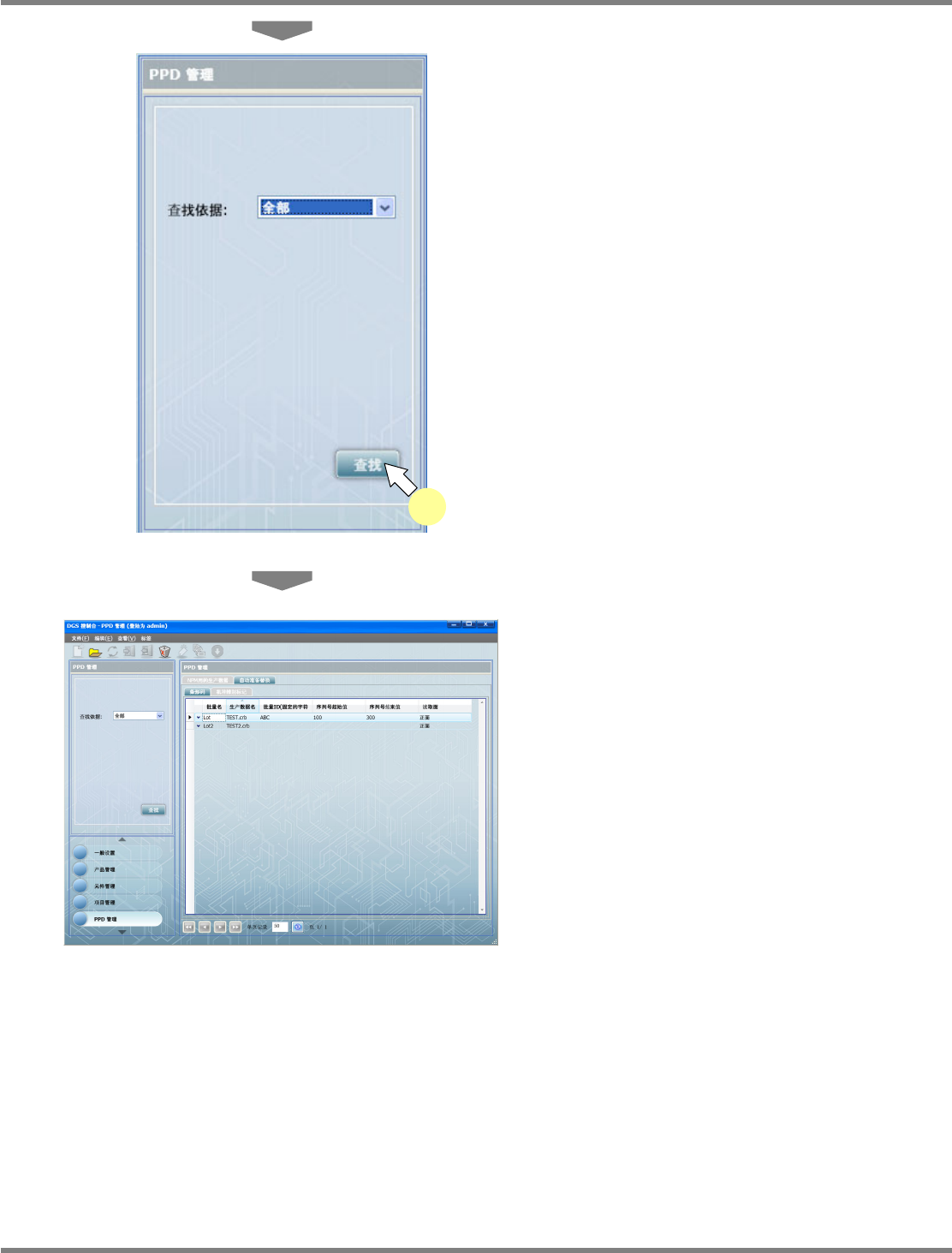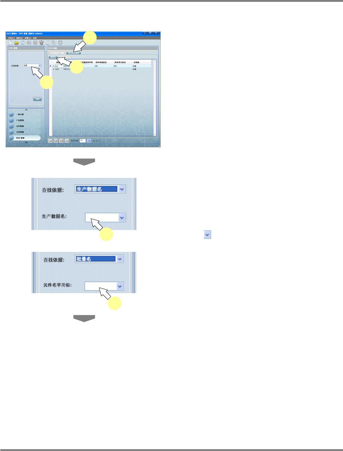 NPM-DGS 程序手册 9.3 生产数据的操作 EJS9AC-MB-09P-02 Page 9-47 5 点击 [ 查找 ] 。 显示出所搜索的项目一览表。 设定条形码时的注意事项 在同一生产线内, 如果存在与设定了条形码信息的批量名称相同 的多个生产数据, 那么在自动切换 机种之际, 将不能下载生产数据而发生错误。 这时, 请将无需下载的生产数据名称变更为与批量名 称不同的名称。 PPDManager0903 00S-09C…