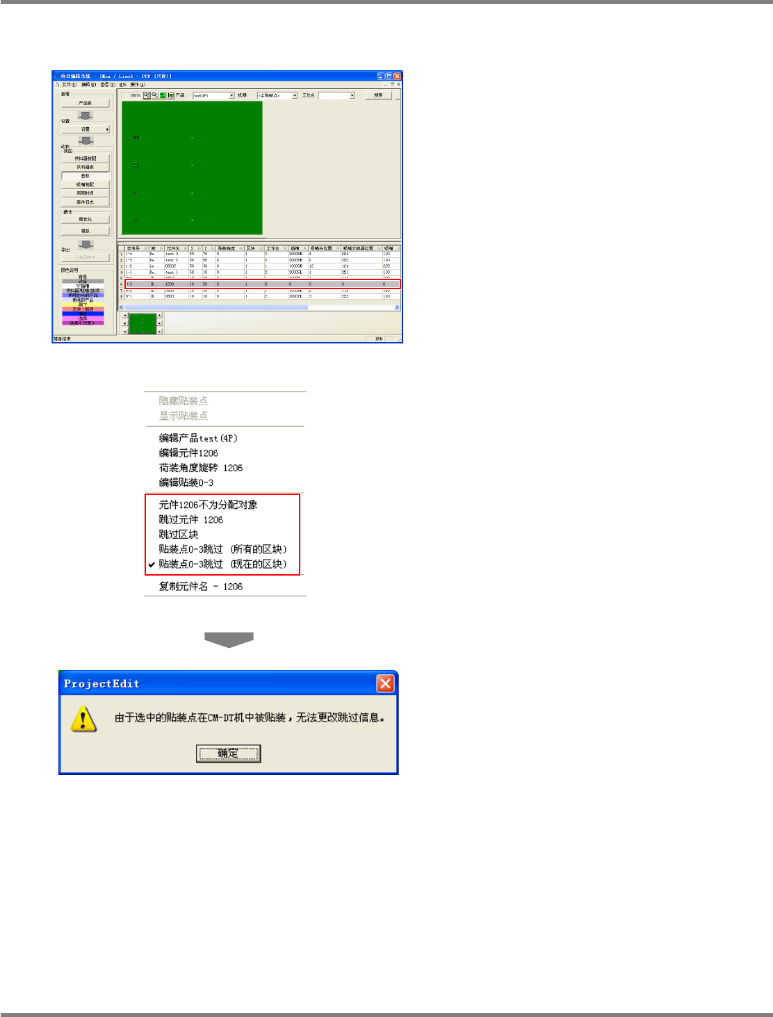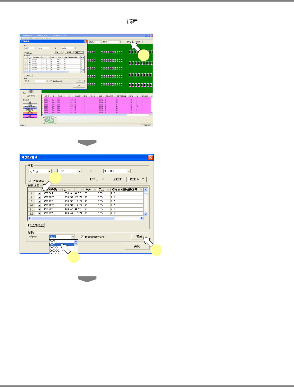 NPM-DGS 程序手册 9.4 关于项目编辑系统画面 Page 9-96 EJS9AC-MB-09P-02 5 点击 [ 是 ] 。 当选择了所选元件库内的元件时,将 显示左侧 画面。 输入元件名后替换时,将显示下述画 面。 将会在基板信息上显示替换后的元件 。 PPD090505S-08C 02 PPD090505S-09C 00 5 PPD090505S-10C 00