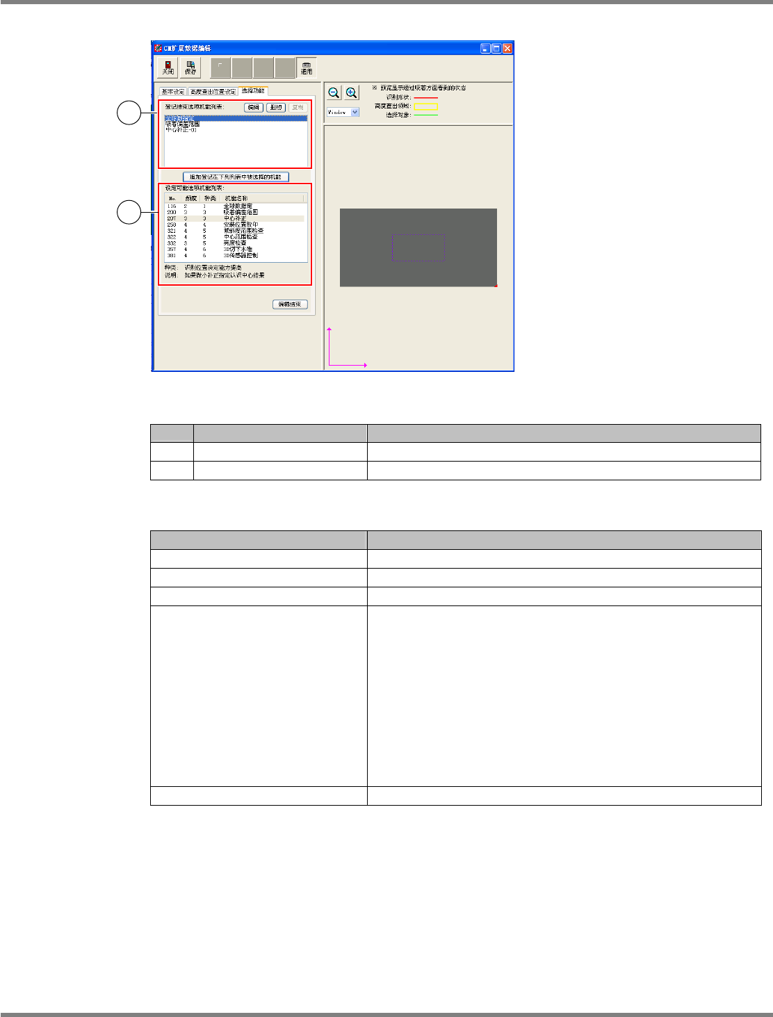 设定可能选项机能列表