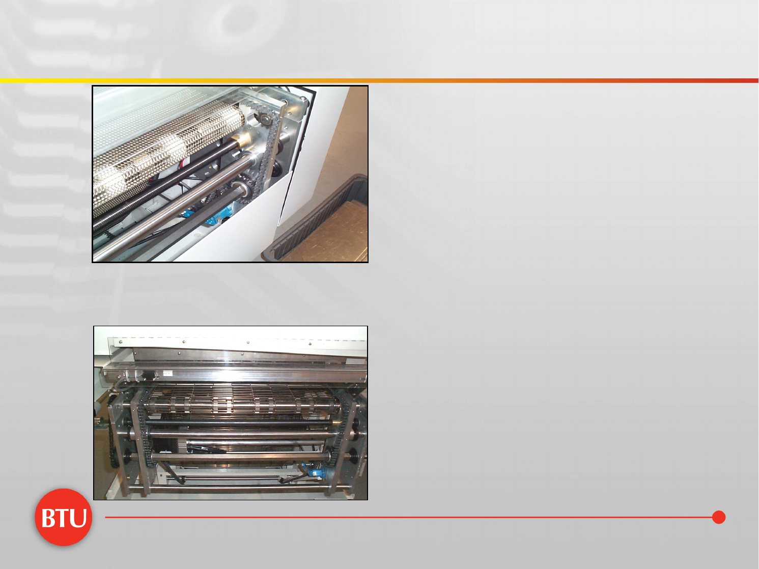 Convey or Syst em • 标准 50 - 457mm 宽度 (选 配 50 - 610m m) • 轨道链条或网带 • 无碳刷马达 – 节省更换碳刷时间 – 自动加油润滑 • 粗目或细目网带