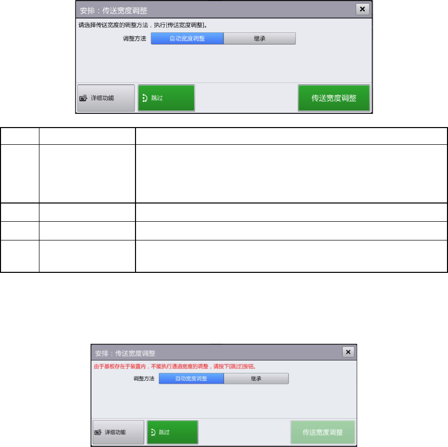 在装置内的通道上残留有基板的状态下,不能执行[传送宽度调整]。将显示如下错误提示,触摸跳