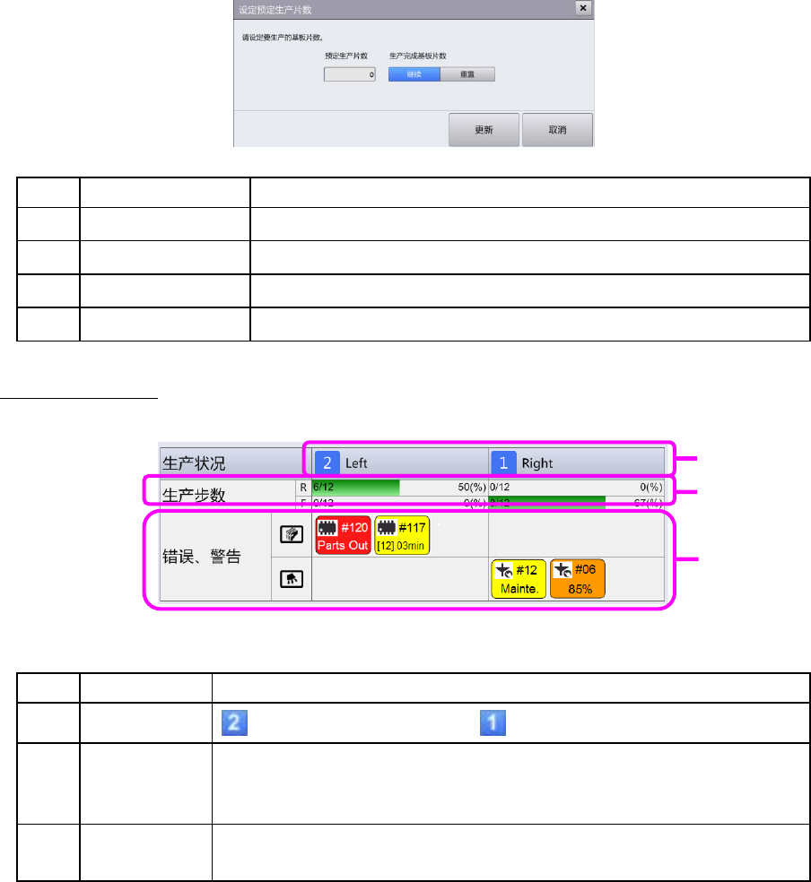 两者的单元中停止生产时,触摸[设定预定生产片数],即显示[设定预定生产片数]对话框。有关详细情况