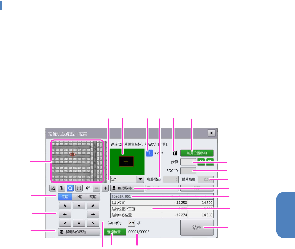 能。而且,可暂停跟踪动作,对进行贴片位置示教的元件贴片位置进行调整。
