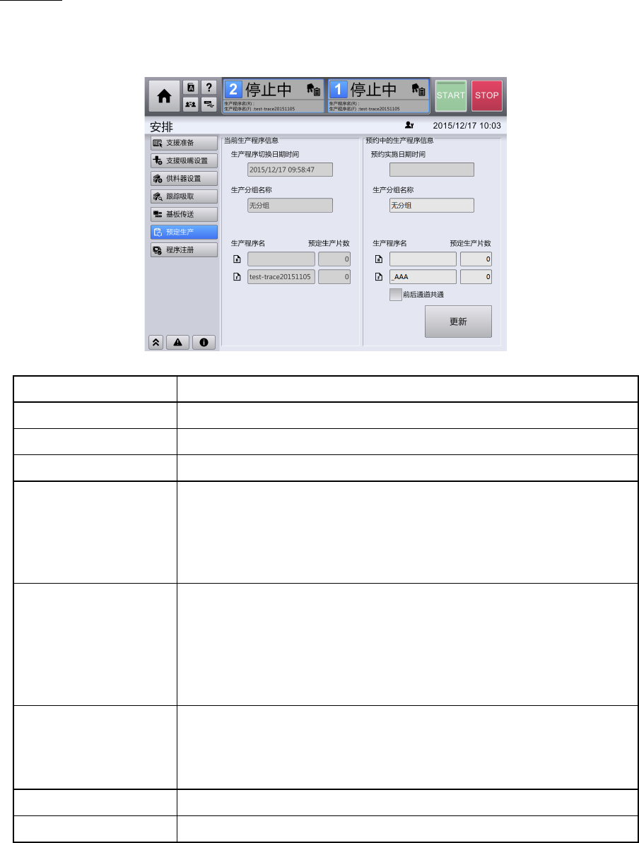 预约中的生产程序信息 显示预约为下一个生产基板的生产程序信息。