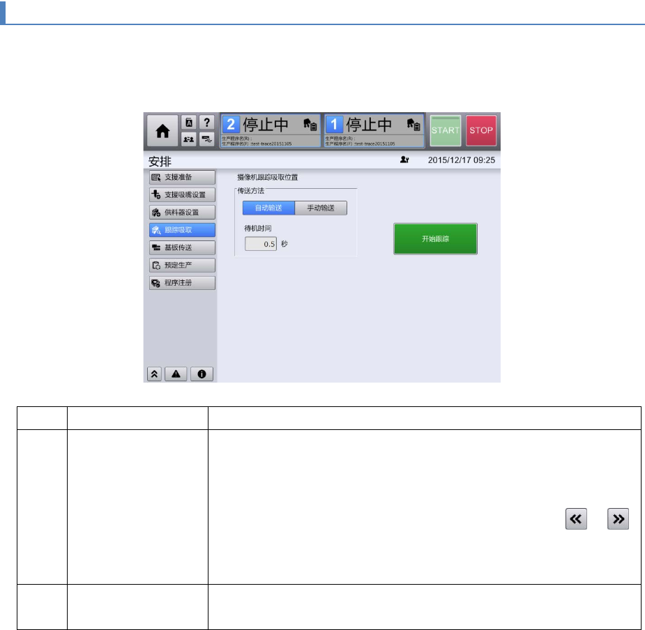 从[安排]画面的子菜单面板触摸[跟踪吸取],即显示[跟踪吸取]画面。