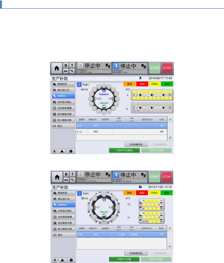 可确认吸嘴状态,ATC 的动作,以及吸嘴更换是否正常。