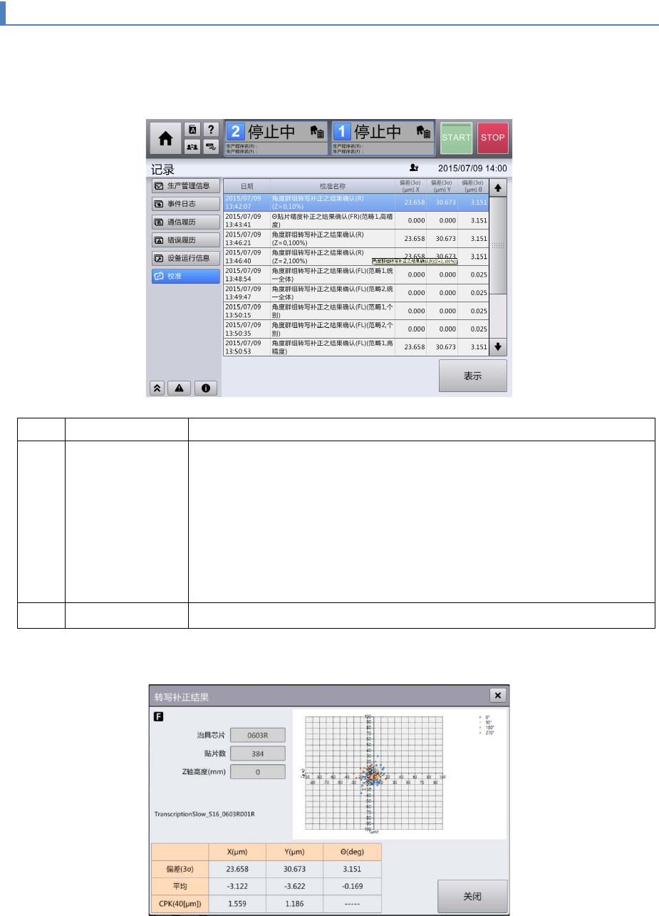 偏差 3σ(X, Y, Θ):显示补正确认时 X,Y,Θ 方向贴片精度偏差的