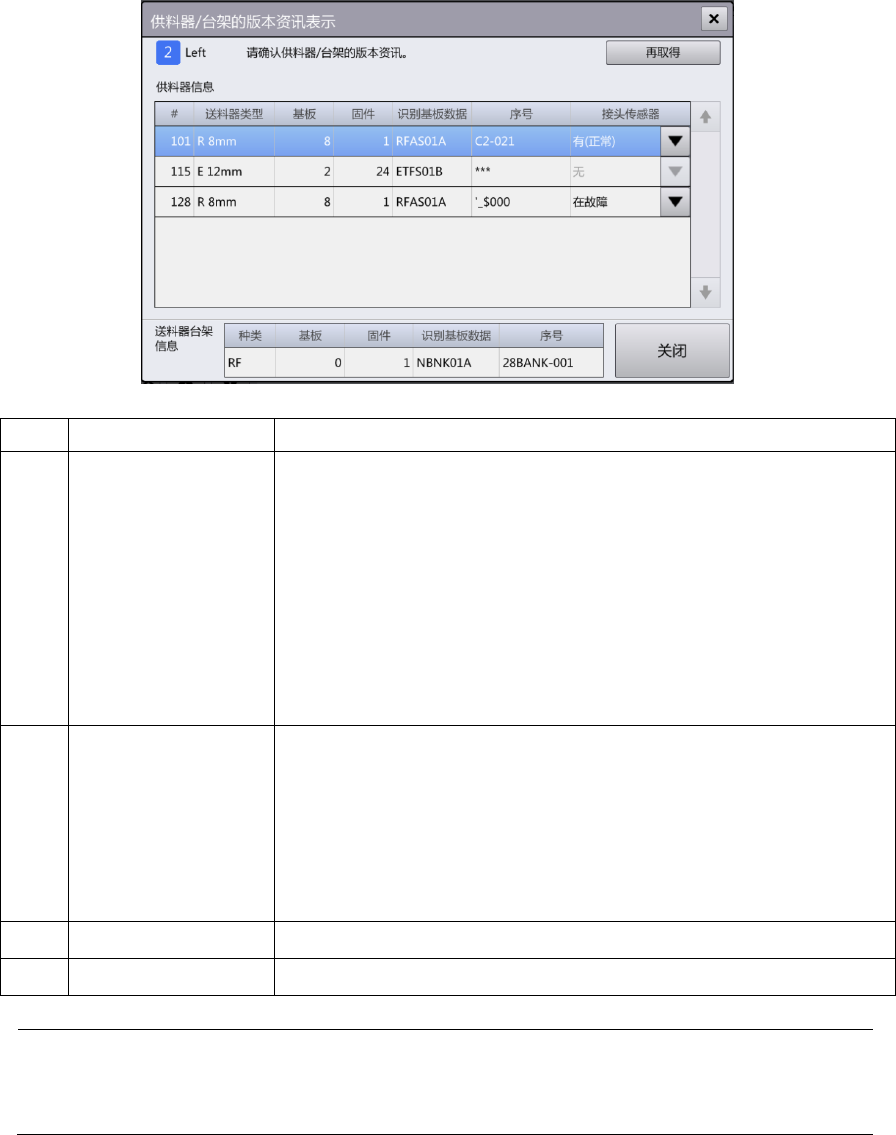 (a) 供料器信息列表 显示台架上已安装的供料器版本信息。