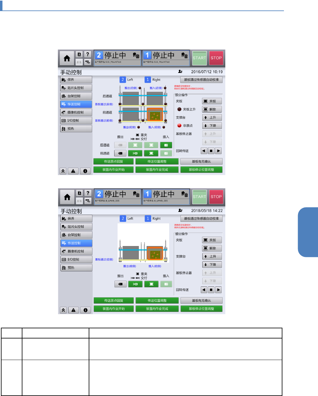 [传送控制]画面仅在用户级别为[MAINTENANCE(维护)]时,才会显示。