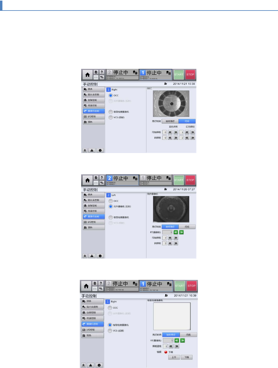 在顶部菜单中按照[手动控制] - [摄像机控制]的顺序触摸后,将显示[摄像机控制]画面。