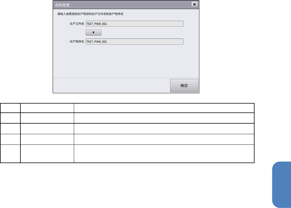 第 4 章 操作篇 4- 10. 文件管理 198 [ 复制 ] 对话框 用选择的生产程 序生成不同名 称的生产程序 。生产分组 名称与原文件相 同。 记号 名称 说明 (a) 文件夹名 显示复制生产程 序后的目标文 件夹名称。 触摸 [ 变更 ] 显示 [ 文件夹变更 ] 对话框,可更 改文件夹名 称。 (b) 生产文件名 输入生产 程序的 [ 生产 文件名 ] 。 (c) 生产程序名 输入生产 程序的 [ 生产 程序名 ] 。 …