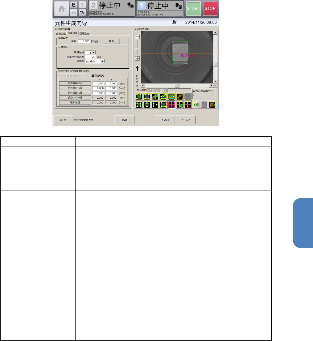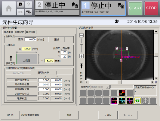识别中心补正:显示元件容纳中心与元件贴片位置的补正值。