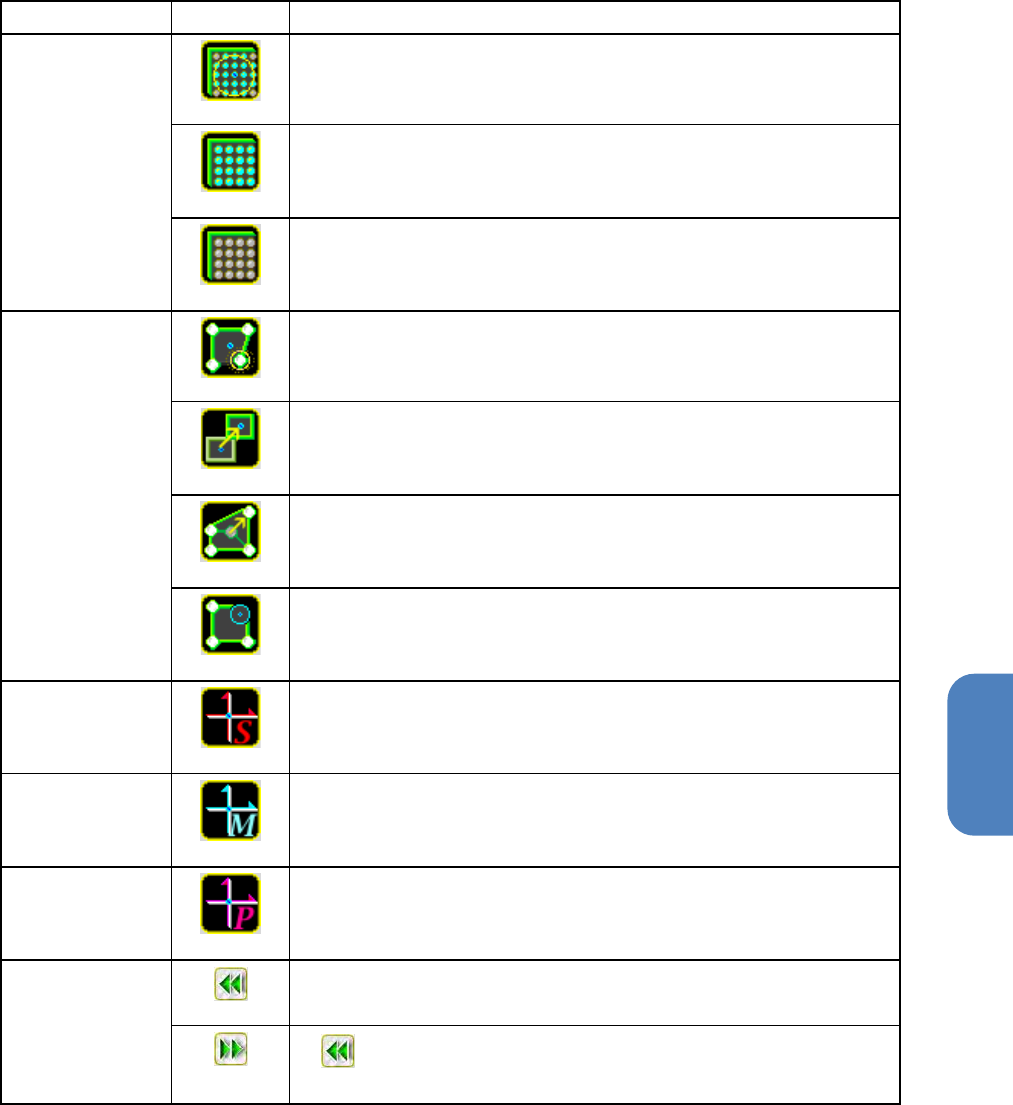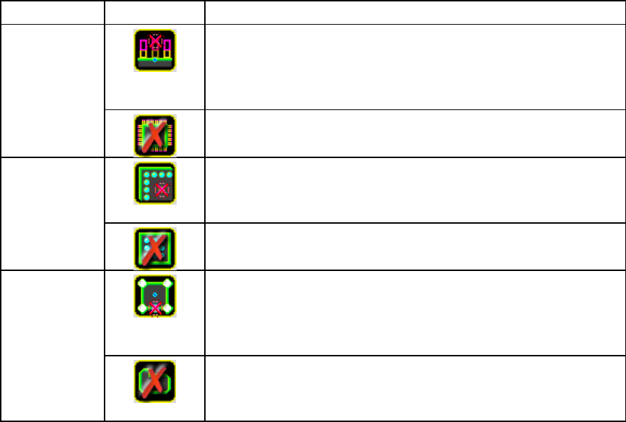 第 4 章 操作篇 4- 13. 元件生成向 导 290 删除按钮 对象 按钮 说明 脚 显示用于设定脚 的缺损或删除 的删除标记。 白色标记:删除 脚 蓝色标记:删除 [ 脚号码 ] 中选择的脚 参数的所有信 息 全部删除脚参数 的所有信息。 球 触摸浅蓝色的球 位置 删除球 。 蓝色标记:删除 [ 球号码 ] 中选择的球 参数的所有信 息 全部删除球参数 的所有信息。 本体(异形) 显示用于删除 本体 的边或顶点 的删除标记。 …