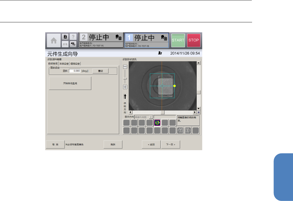 [自动生成]选项卡,可在[吸取、废弃]画面中吸取有元件时,自动从摄像机图像制作脚元件的识别