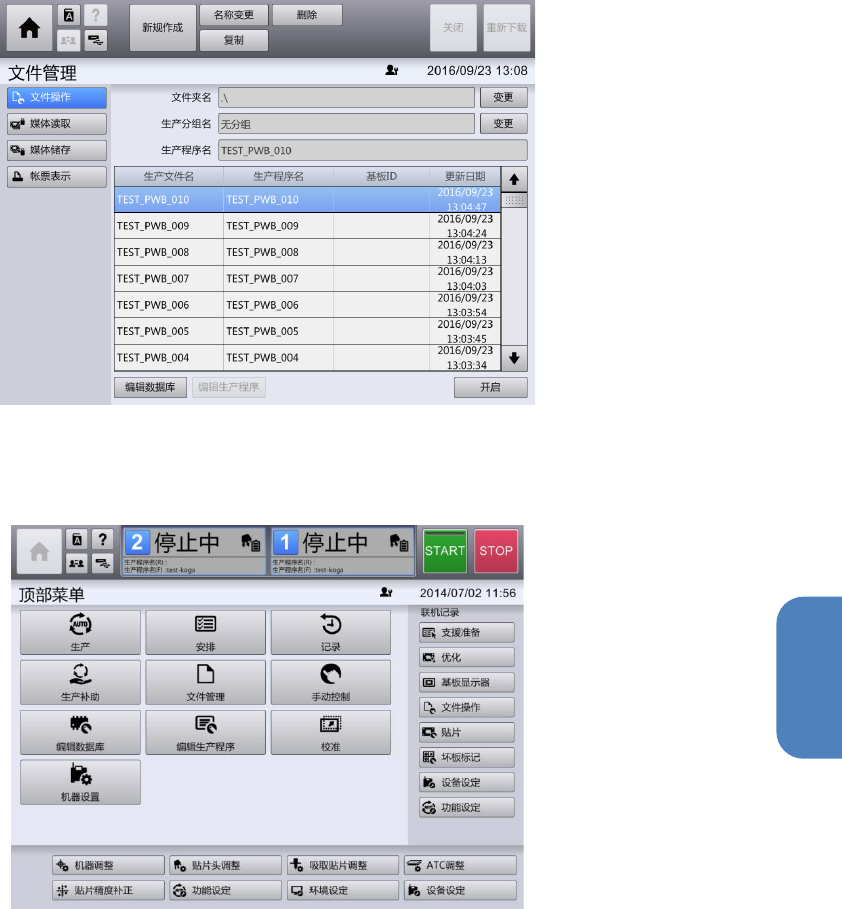 在[安排] – [支援准备] 画面中生产程序已被载入时,[文件操作]画面不能使用。