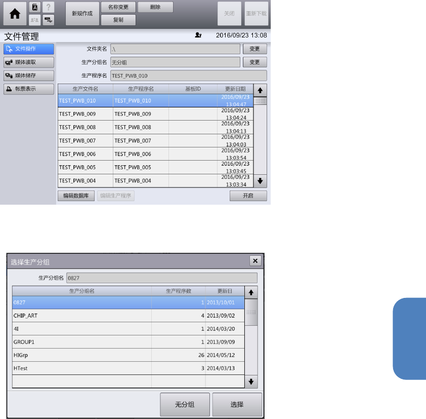 关闭[选择生产分组]对话框,显示[文件操作]画面。
