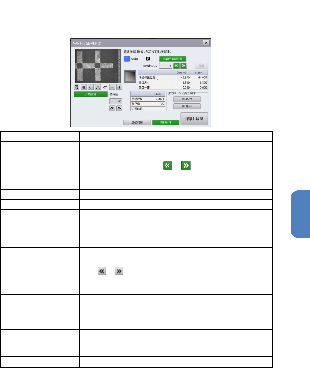 (l) 保存并结束 保存所有识别测试参数,关闭对话框。