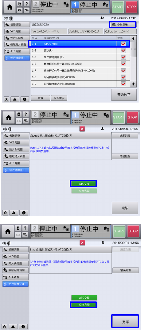 打开安全罩,拆下 ATC,安放精度补正时