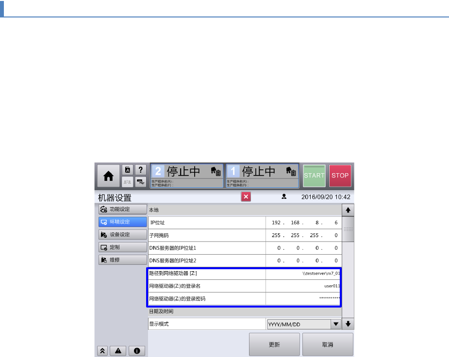 显示[机器设置] - [环境设定] 画面,输入[路径到网络驱动器 [Z:]]。