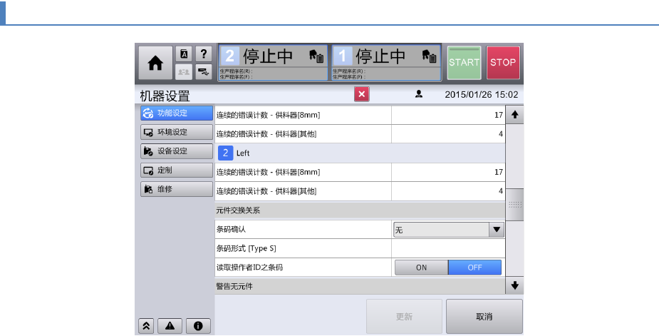 各供料器的「元件识别错误」或「元件高度异常」连续检出规定次数的错误时,将作为具有错误元件