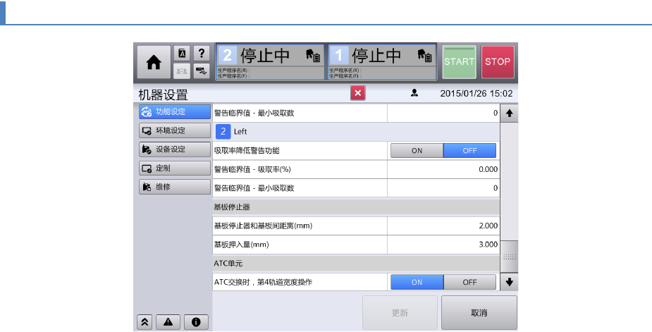 设定为 ON 后,更换高速贴片头的 ATC 单元时,可使安装在第 4 轨道上的 ATC 单元递送到近前。