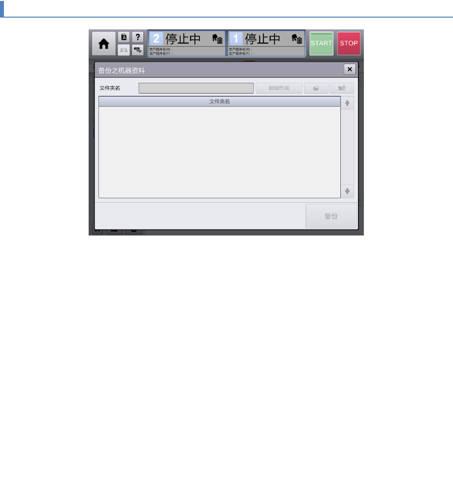 为了保存机器资料,需要从 USB 存储器内的文件夹名列表中选择,使文件夹名显示在文本区域里。