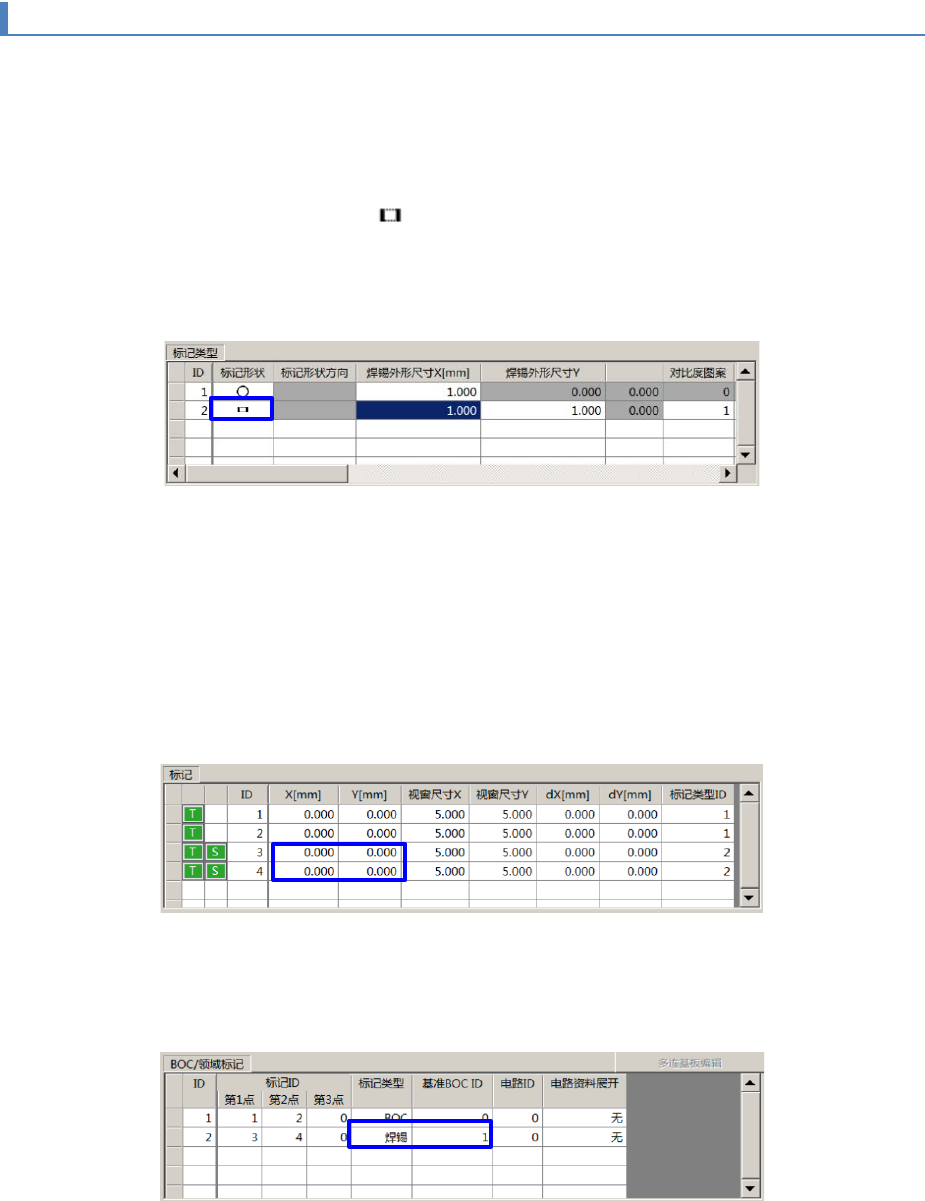 ② 把焊锡识别用的 BOC/领域标记数据的标记类型,