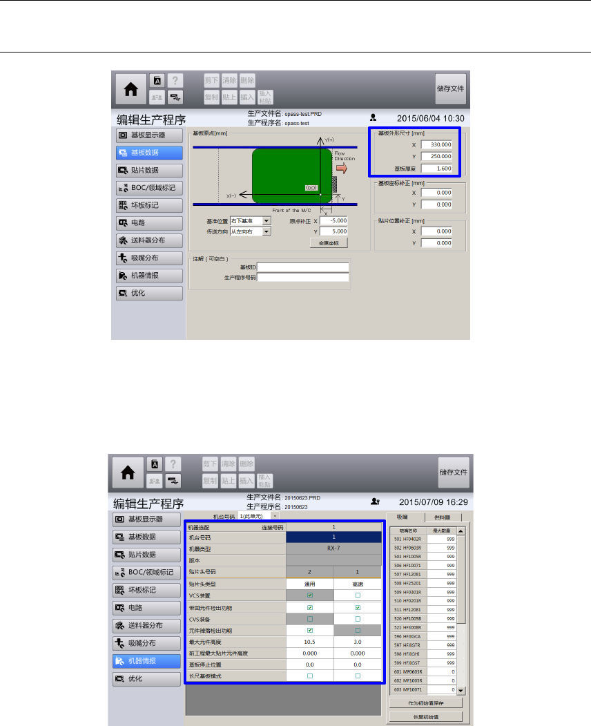 ① 设置生产程序的基板尺寸。
