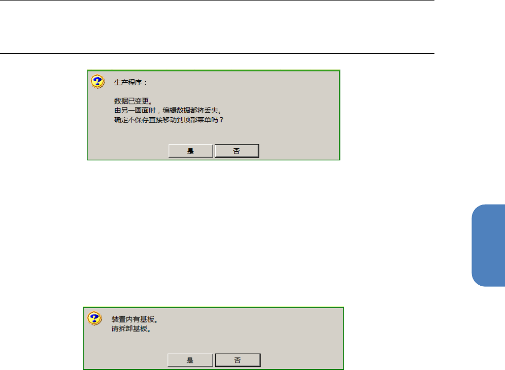 触摸[否] 按钮,则强制显示 [顶部菜单] 画面。如果要将基板取出,需再次返回 [编辑生产程序]