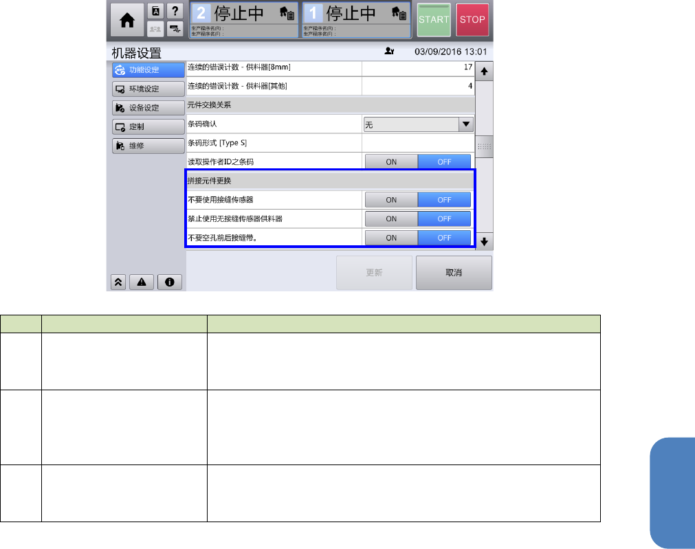 (a) 不要使用接缝传感器 选择功能 ON/OFF,该功能为在整体装置中不使用接缝传感器。