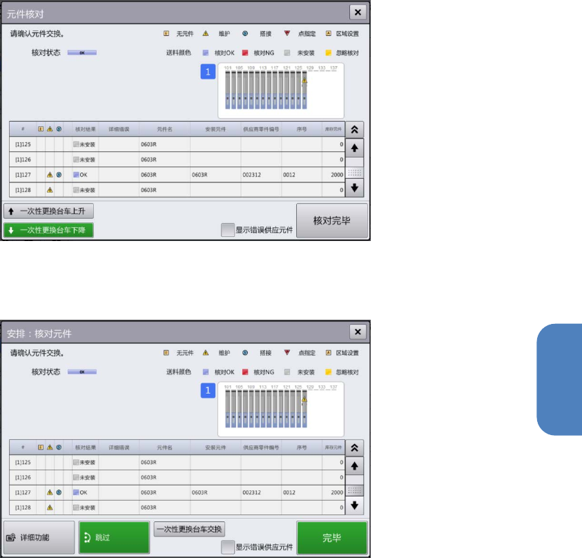 • [安排] – [供料器设置] 画面 – [元件核对] 对话框