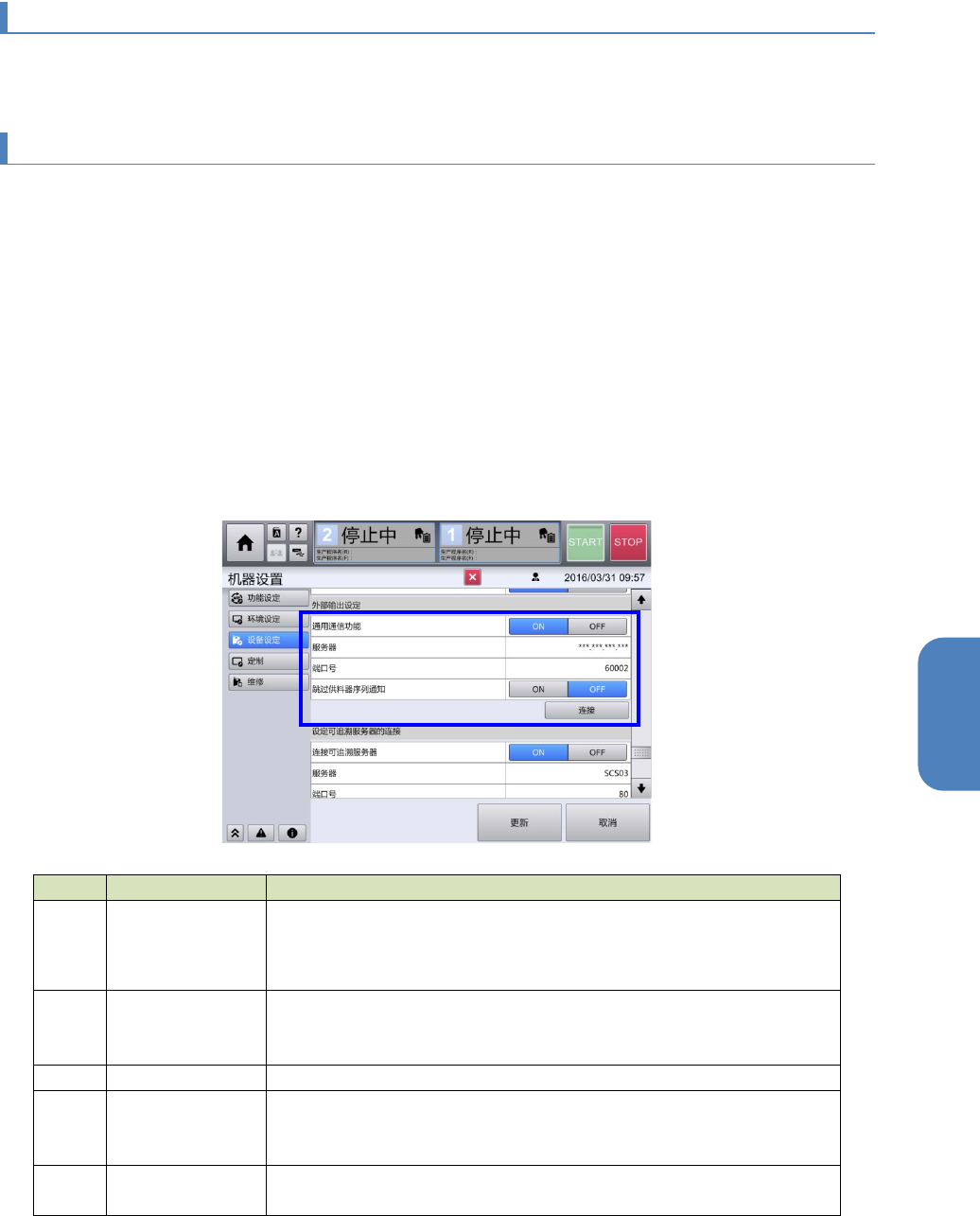 如果机器设置的数据已被变更,必须先触摸[更新]按钮进行更新。