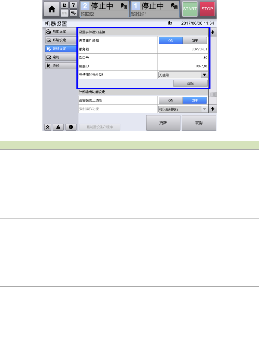 中即会显示[设置元件核对信息通知]、[设置事件通知连接] 、[外部输出功能设定] 、以及[误安装防止